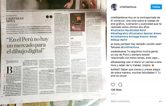 El sábado 22 de julio, la revista Somos del diario El Comercio publicó un artículo sobre el artista peruano Cristhian Hova, quien, decía la nota: “ha ilustrado cuatro portadas alternativas de películas de Marvel, 11 para DC Comics y una para Century Fox. Además, tres tapas para la revista The New Yorker”.